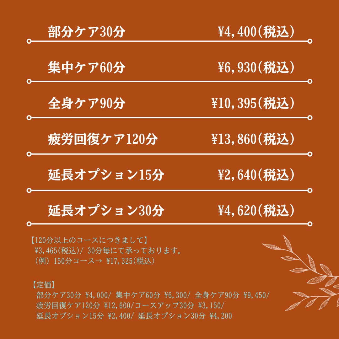 30分コース¥4,400(税込)より出張マッサージ大阪市のご利用が可能です。大阪市内限定エリアと江坂町(吹田市)近辺にの地域が対象です。ご利用地域はこちらからご確認ください。